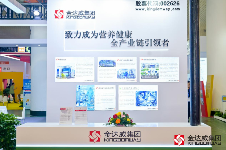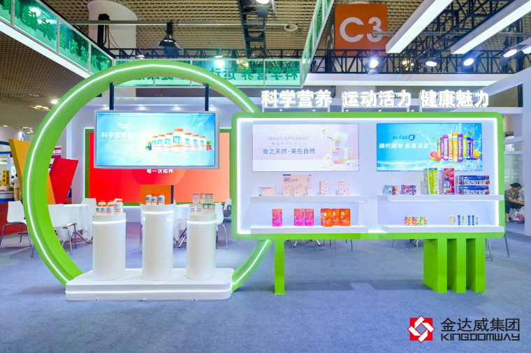 展会现场,金达威打造了兼具科技感与互动性的展台,集中呈现了企业在保健品原料及终端产品两大领域的核心竞争力。